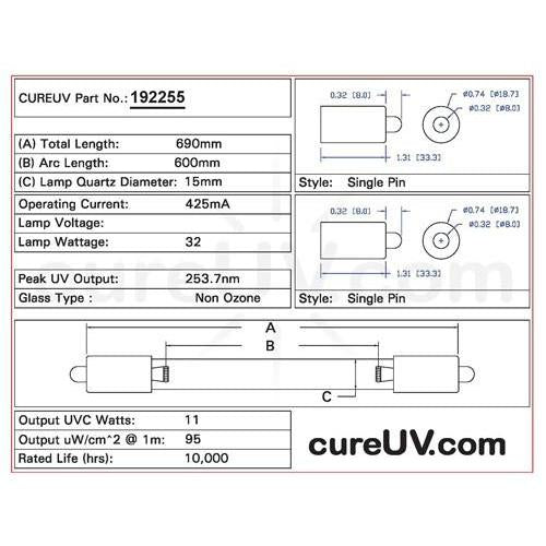Atlantic Ultraviolet Replacement 05-1017A-R UVC Light Bulb - CureUV Brand