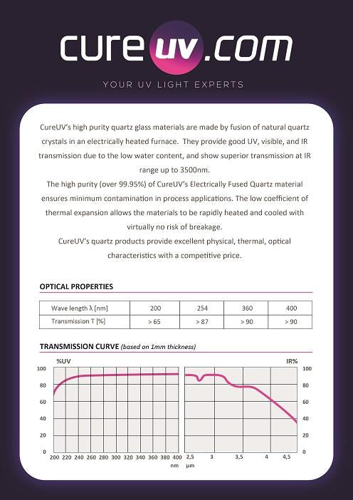 Placed between the substrate and the lamp, the plate does not absorb UV rays but reradiates the rays at a temperature lower than the lamp. You can clean the plate periodically. The quartz plate is subjected to strict quality control measures and is a generic OEM replacement. A quartz plate is generally used in UV curing lamps and has the following dimensions: