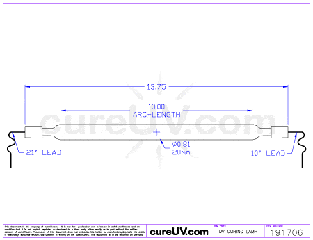 Prime UV part # 16-1-34-22-6-0 Replacement UV Curing Lamp/Bulb