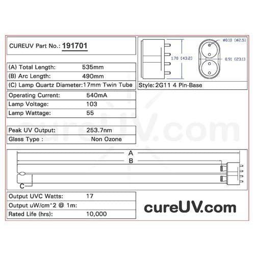 Bombilla UVC marca CureUV para Philips TUV F17T8