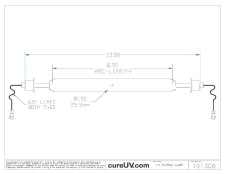 Lampe UV américaine UVSE 1250 - Longueur d'arc 12" 300WPI