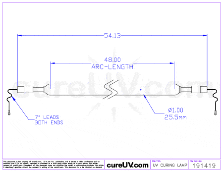 Hanovia Pièce # 6825C431 Ampoule de lampe à polymérisation UV