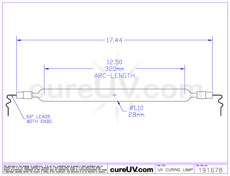 Hanovia pièce # 6855I444 Lampe/ampoule à polymérisation UV dopée au Galium