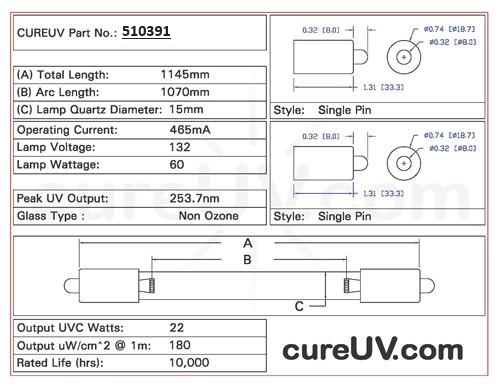 *Hg - La lampe contient du mercure - gérez-la conformément aux lois locales en matière d'élimination en visitant : www.lamprecycle.org ClearWater Tech LA48 Ampoule UV germicide pour le traitement de l'eau