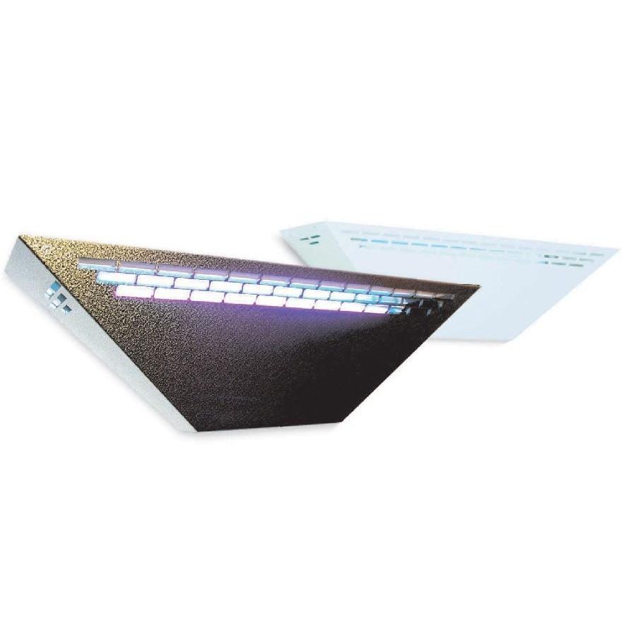 Ce système de 15 watts couvre facilement 84 m² et offre une portée linéaire de 7,6 m. Son design élégant lui permet de s'intégrer harmonieusement dans une clinique, un bureau ou une maison. Il combine une applique murale en forme de V, une lampe UV et un panneau adhésif. Les insectes volants sont attirés par la lumière ultraviolette et capturés sur un panneau adhésif remplaçable situé à l'intérieur du luminaire. Proposée dans une variété de couleurs et de finitions, cette applique décorative s'adapte à tous les environnements et est tout aussi efficace qu'une solution au style plus industriel.