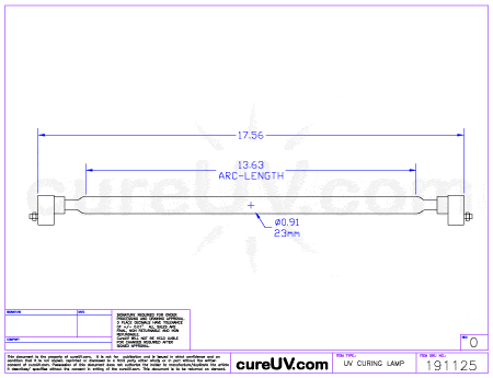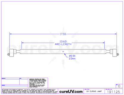 L'ampoule de lampe à polymérisation UV Inca Eagle est une ampoule remplie de mercure qui a une longueur d'arc de 14" et une longueur totale de 17,563". Avec un diamètre de tube de 23 mm, l'ampoule compatible OEM fonctionne bien avec l'imprimante à plat UV Inca Eagle qui comprend les pièces de lampe suivantes :
