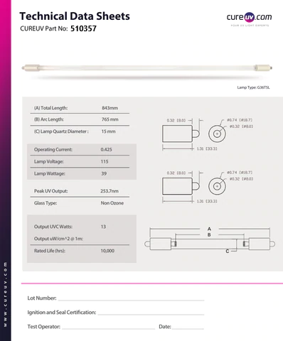 Notre ampoule UVC de remplacement Martin Water Conditioning CUV24E est une ampoule à double extrémité à une broche qui a une longueur d'arc de 30,12" et une longueur totale de 33,19". Avec une puissance maximale de 253,7 nm, l'ampoule de remplacement UVC aide à détruire 99,9 % des germes présents dans l'eau pour vous offrir une eau salubre à tout moment. L'ampoule de remplacement est fabriquée en céramique comme matériau de base et est disponible dans un type de verre sans ozone. L'ampoule dure 10 000 heures, après quoi nous vous recommandons fortement de la remplacer pour de meilleures performances.