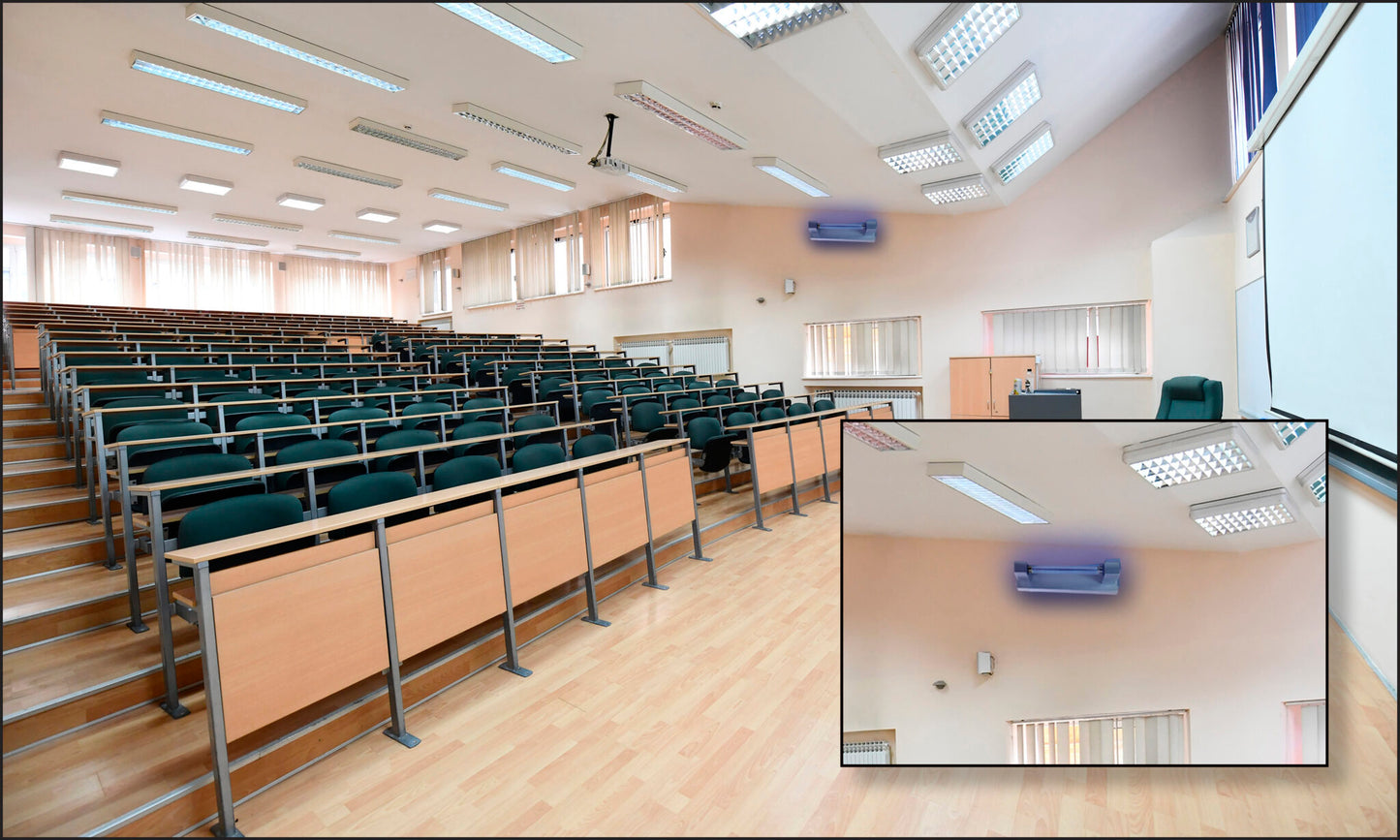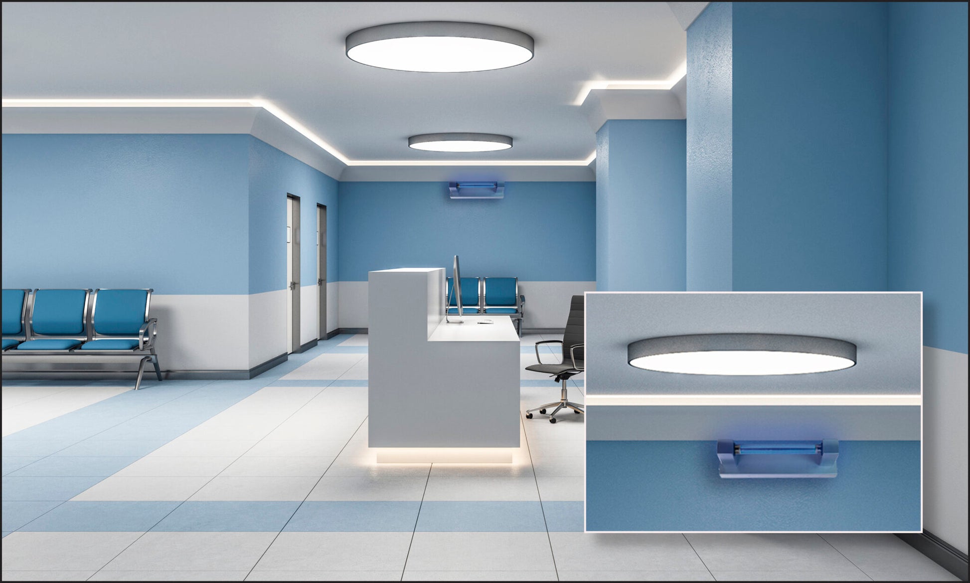 De nombreuses études (disponibles sur demande) montrent que les photons produits par la technologie de désinfection Far UVC (222 nm) sont incapables de pénétrer les couches protectrices de la peau et des yeux humains. Cet appareil offre un moyen plus sûr de détruire les agents pathogènes tels que le SRAS-CoV-2 sans avoir recours à des nettoyants agressifs. Utilisez-le dans les pièces fréquemment visitées telles que les postes d'infirmières, les postes de travail informatiques pour éviter les risques d'infections.