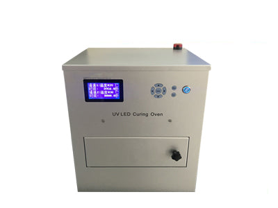 The system hat consists of an oven, UV LED irradiation head and the corresponding connecting wires. The irradiation head is a UV LED system integrated with imported high-quality UV LEDs. The wavelength of this curing system is 365/385/395/405nm and its curing area is 200x20nm. The forced air cooling ensures the system correctly works for prolonged periods, supports external signal input and trigger.