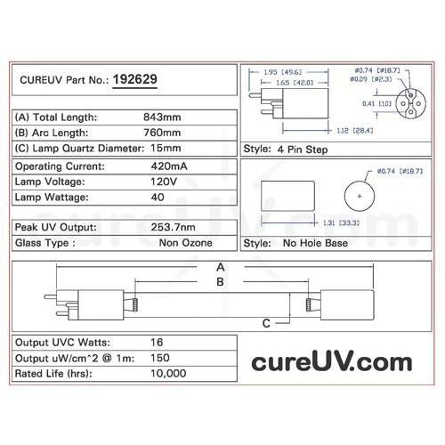 Drawing of Replacement UVC Bulb Item # 192629 (PDF)