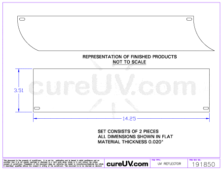 CureUV’s Aetek Part # 0701134 UV Curing Reflector Liner is a 100% compatible UV reflector that exceeds OEM standards of bulb performance. The UV replacement reflector or liners are compatible to the Aetek UV systems.