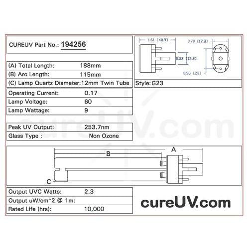 Drawing of Replacement UVC Bulb Item # 194256 (PDF)