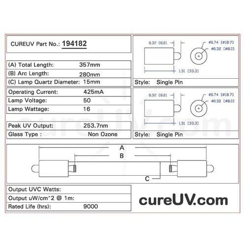 Drawing of Replacement UVC Bulb Item # 194182 (PDF) ![]()