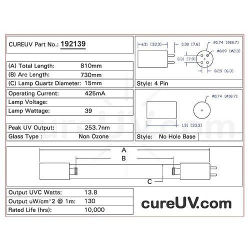 Drawing of Replacement UVC Bulb Item # 192139 (PDF) ![]()