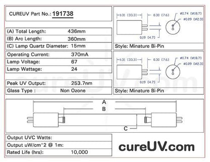 Drawing of Replacement UVC Bulb Item # 191738-AU (PDF) ![]()