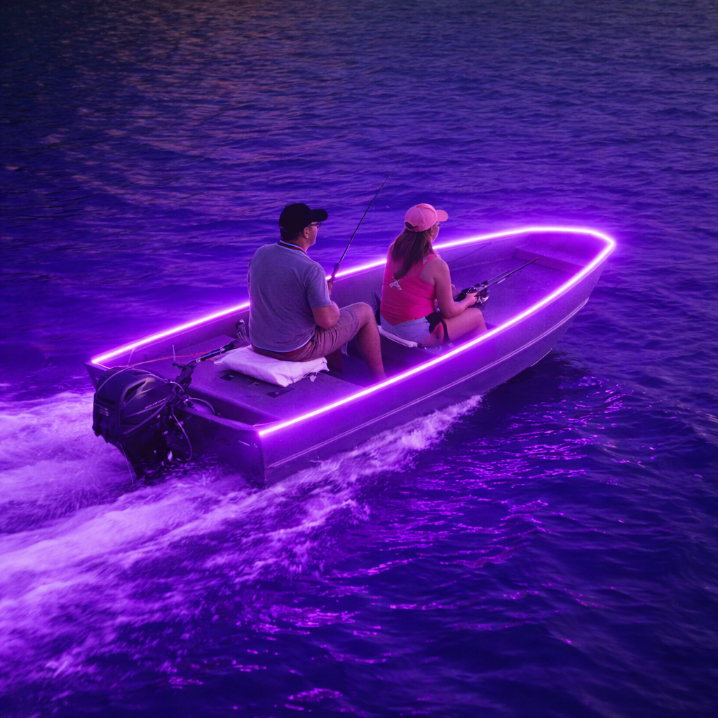 Built using high-efficiency 2835 SMD LEDs, the strip produces a uniform 365 nm UV output optimized to maximize the visibility of fluorescent fishing line, coatings, inks, and adhesives. Its flexible construction, dimmable capability, and industrial waterproofing make it suitable for marine, industrial, and specialty lighting applications.