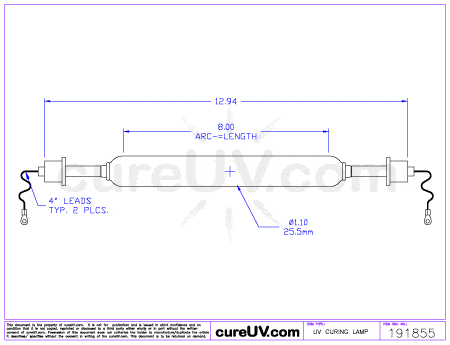 Guaranteed 100% Compatible Replacement Ultraviolet (UV) Lamp - Gallium Wavelength - 8 Inch Arc Length