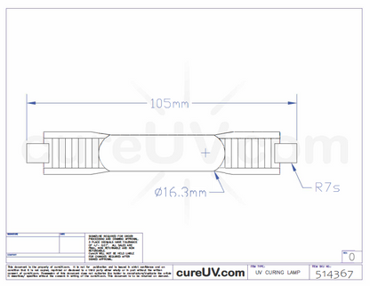The curing lamp has an overall length of 105mm and a tube diameter of 16.3mm and is considered one of the high quality and highly effective UV emitters in the market. The lamp works well to dry and cure inks and coating in signs and graphics. The lamp is filled with iron metal halide and contains a quartz plate that prevents debris from falling on the lamp by working as filler between the lamp and the curing system.