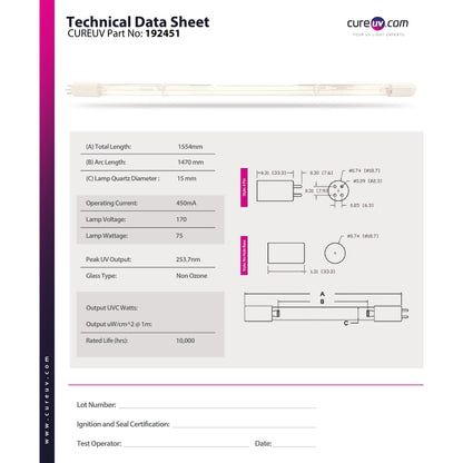 Guaranteed Replacement Ultraviolet (UV) Bulb - 4 Pin on a Single End - 75 Watts - 61.18 Inch Length Lamp - Worry Free Performance for 1 Year