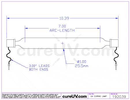 Guaranteed 100% Compatible Replacement Ultraviolet (UV) Lamp - Iron Wavelength - 7 Inch Arc Length - 10.39 Inch Total Length (end to end)