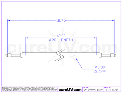 Hanovia 12 inch UV lamp (200 WPI) - OEM part number 6512A2S - Drawing (PDF) ![]()