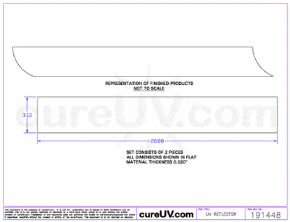 The reflector liner exceeds OEM standards, in terms of curing performance and quality. The UV reflector is a 100% guaranteed replacement part that is specially coated and is manufactured to help in reflecting UV curable energy.