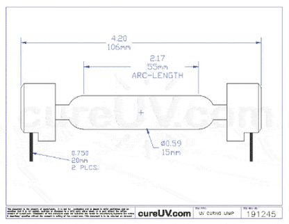 The curing lamp bulb is a compatible replacement UV lamp that is manufactured in the USA and is considered the most effective, high output and high quality UV emitters in the market today. The CureUV light bulb exceeds OEM standards of curing bulb performance. The 55mm specially doped light bulb works to dry coating and inks in signs and graphics. The curing lamp consists of a quartz glass plate that protects lamps from debris and works as a filter between the curing system and the lamp. The plate prevents dirt, grit and contaminants from building up in the lamp.