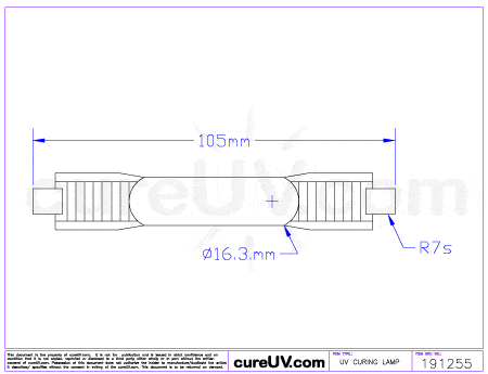 With an overall length of 105mm, and a tube diameter of 16.3mm, the UV curing lamp is considered one of the high quality and highly effective UV emitters in the market. The lamp helps to dry and cure inks and coating in signs and graphics. The lamp contains a quartz plate that prevents debris from falling on the lamp by working as filter between the lamp and the curing system.