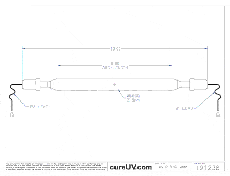 Guaranteed 100% Compatible Replacement Ultraviolet (UV) Lamp - Mercury Wavelength - 8 Inch Arc Length - 13 Inch Total Length (end to end)