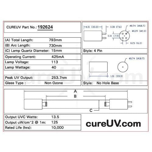 Mechanical Drawing of Replacement UVC Bulb![]()