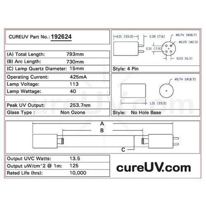 Guaranteed Replacement Ultraviolet (UV) Bulb - 4 Pin Single End - 38 Watts – 31.22 Inch Length Lamp - Worry-Free Performance for 1 Year