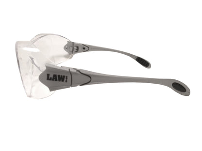 For those of us who need over the glass safety eyewear protection, the Law® OTG (Over the Glass) eyewear is a stylish and sensible option. Non slip TPR temples give the user comfort and grip and the wraparound style allows improved angular coverage and peripheral vision. This product meets the ANSI Z87+ and CSA Z94.3 eyewear standards.