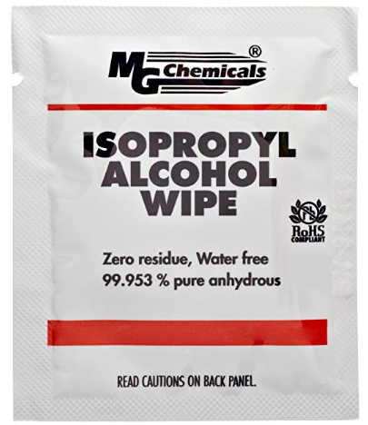 The MG Chemicals wipes are ideal for use in any UV application. At 99.9% Isopropyl Alcohol they can clean any debris and oils that might affect the UV process.