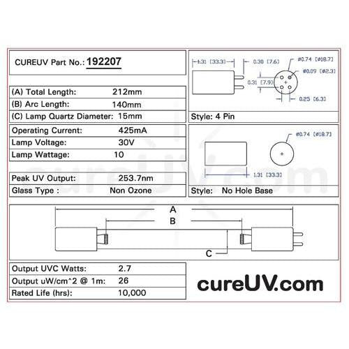 Drawing of Replacement UVC Bulb Item # 192207 (PDF) ![]()