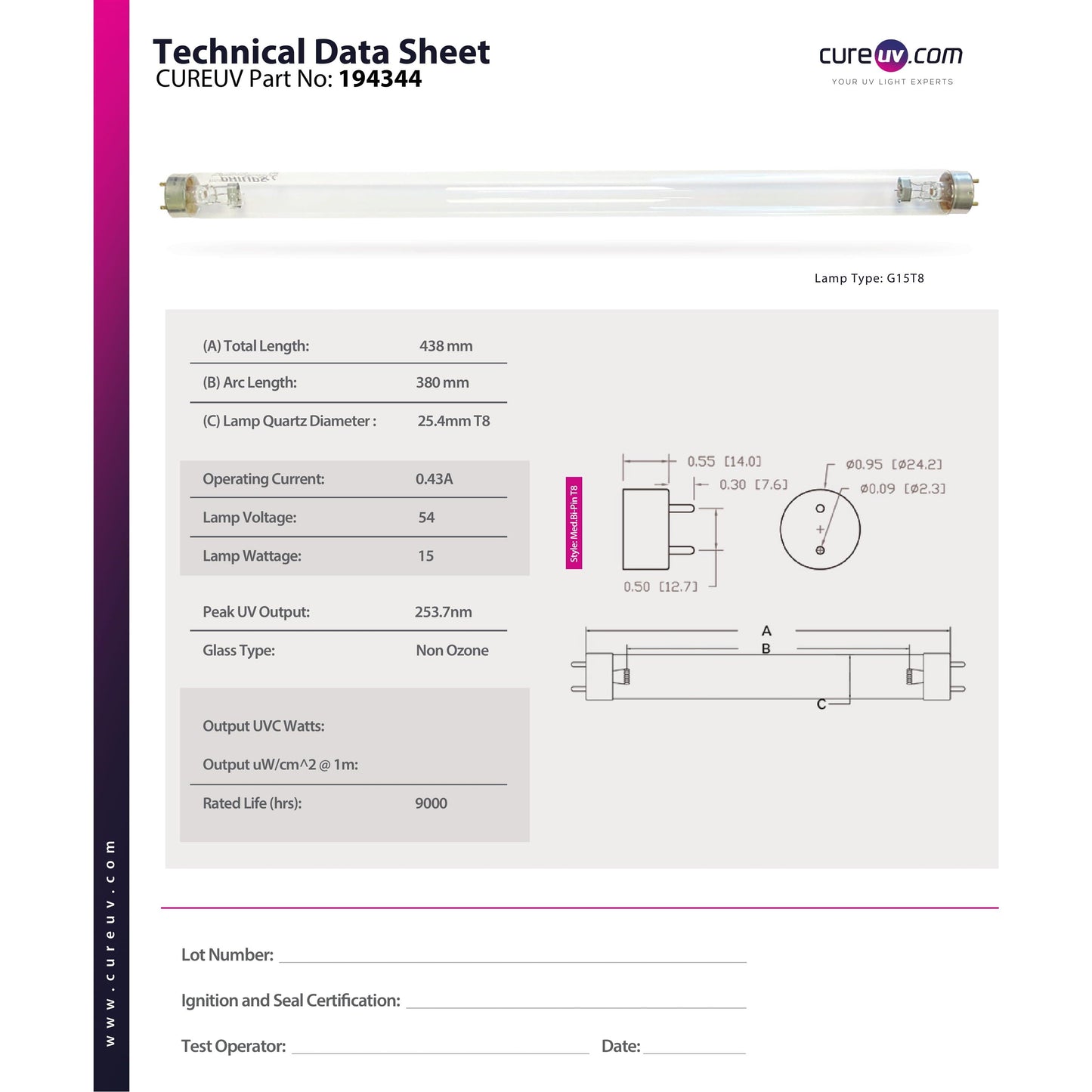 Guaranteed Replacement Ultraviolet (UV) Bulb - Medium Bi-pin (2 Pin), Double Ends - G13 Base - 15 Watts - 17.22 Inch Length Lamp - Worry Free Performance for 1 Year
