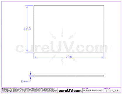The clear-fused plate is constructed using the material quartz and provides the utmost UV transmission. The plate is cut precisely to provide a perfect fit. The quartz plate has the following dimensions: